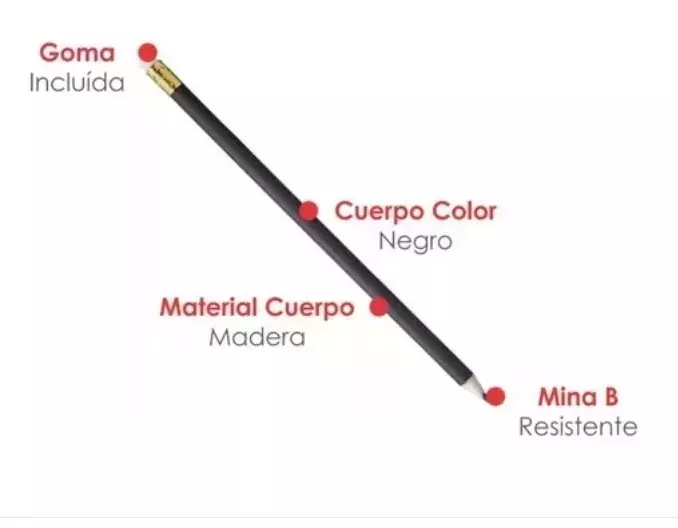 Lápiz redondo de grafito negro con goma incluida, fabricado con madera reforestada. Cuerpo negro con corona dorada. Tienen mina B resistente. Se imprimen a un color!